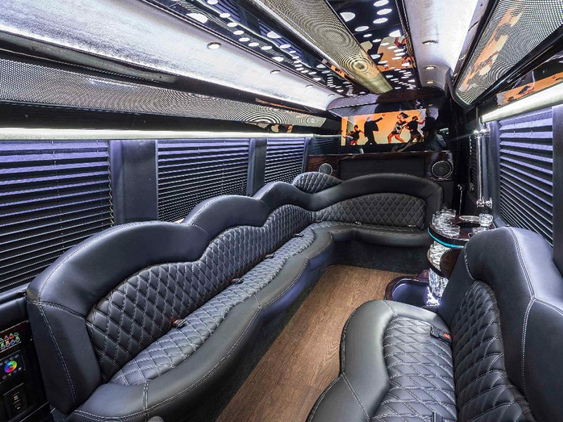 This is a brand new 2021 Mercedes Sprinter Limo Party Bus. Just like our other party buses, you are able to walk in and find your seat rather than sliding to your seat through the door, like you have to in a limo.