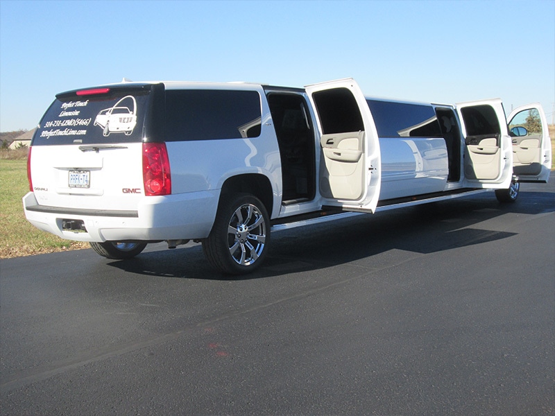 Ride in-style with this ultra-luxe Denali Stretch Limo! Bright white with a long, one-piece window, giving it an extra stretched look.