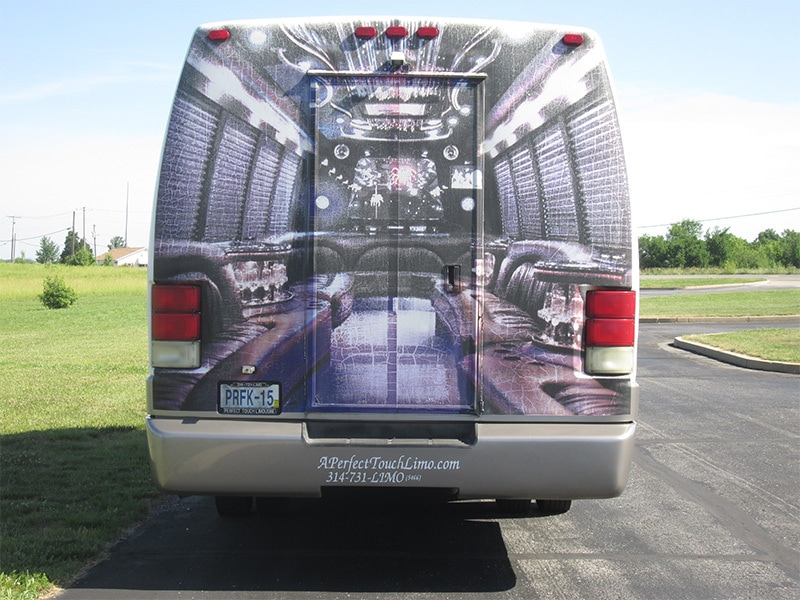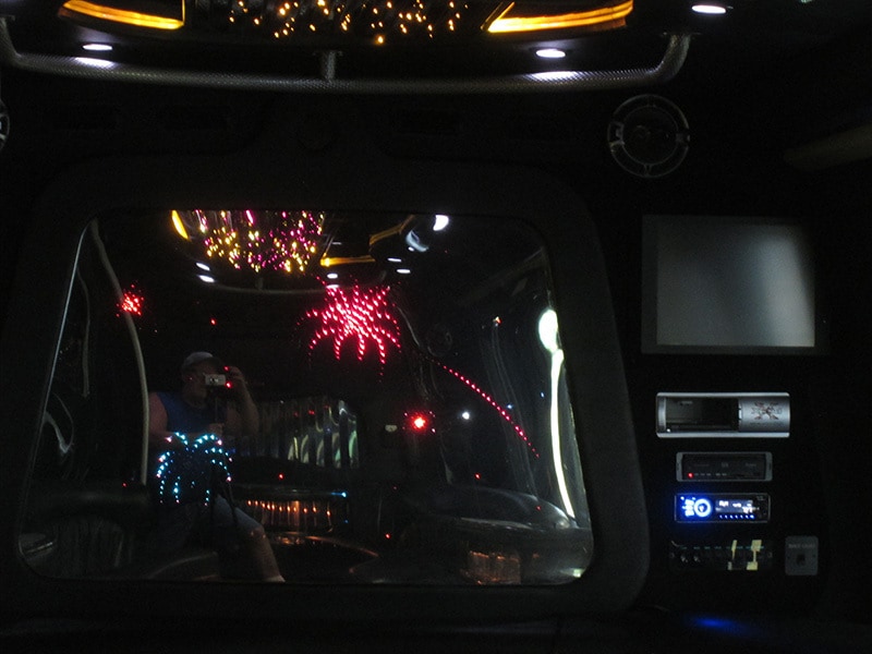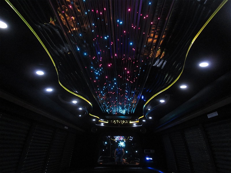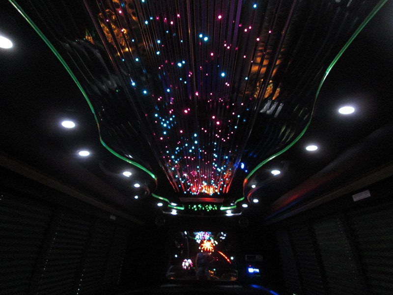 Enjoy a light show on this party bus with the “fireworks” display in the back.